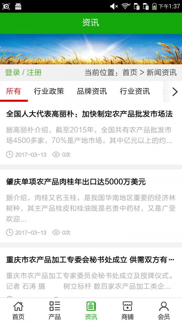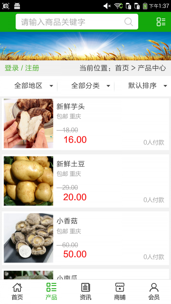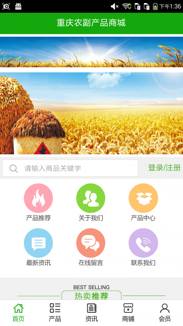 重庆农副产品商城app不仅具备购物、查询订单、搜索商品、行业资讯和产品评价等常用功能,而且还实现了手机版特有的会员注册登录、广告位、招商开店等功能。目标是整合当地品牌商、生产商、经销商,为商家和消费者之间提供一站式解决案。