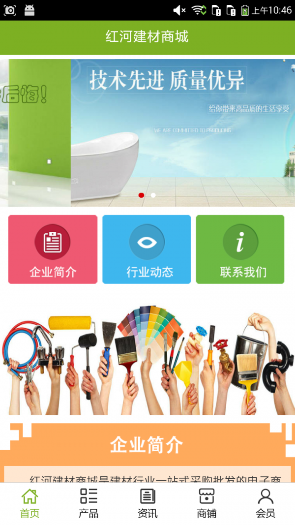 红河建材商城app不仅具备购物、查询订单、搜索商品、行业资讯和产品评价等常用功能,而且还实现了手机版特有的会员注册登录、广告位、招商开店等功能。目标是整合当地品牌商、生产商、经销商,为商家和消费者之间提供一站式解决案。