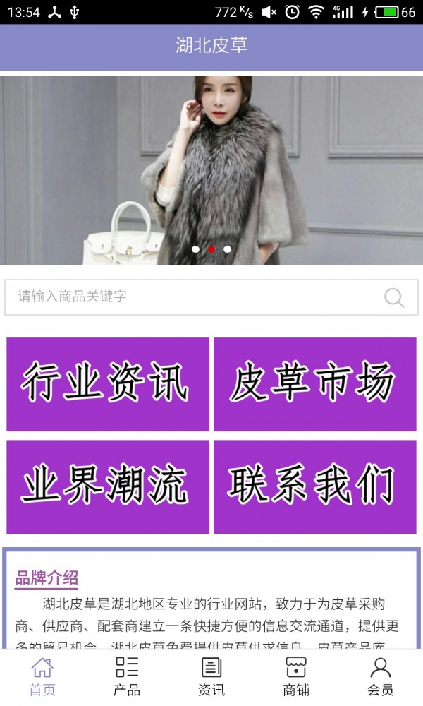 湖北皮草app不仅具备购物、查询订单、搜索商品、行业资讯和产品评价等常用功能,而且还实现了手机版特有的会员注册陆、广告位、招商开店等功能。目标是整合当地品牌商、生产商、经销商,为商家和消费者之间提供一站式解决方案。