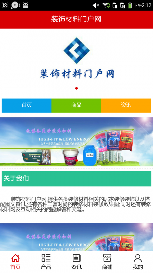 装饰材料门户网App不仅具备购物、查询订单、搜索商品、行业资讯和产品评价等常用功能,而且还实现了手机版特有的会员注册登录、广告位、招商开店等功能。目标是整合当地品牌商、生产商、经销商,为商家和消费者之间提供一站式解决案。
