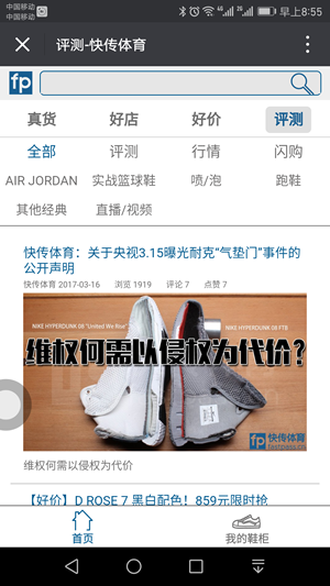 快传体育app是一款体育用品网络交易应用APP,快传体育app同时也是也是专业的独立第三方体育用品消费评测平台,快传体育app运用网络技术与行业背景,为消费者描绘出准确而清晰的正品销售渠道,消费评价与优惠信息。