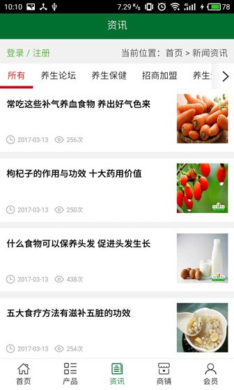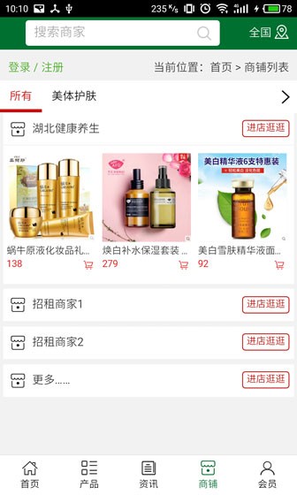 湖北省健康养生客户端不仅具备购物、查询订单、搜索商品、行业资讯和产品评价等常用功能,而且还实现了手机版特有的会员注册陆、广告位、招商开店等功能。