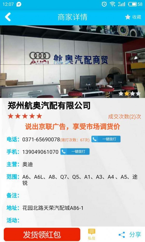 ●汽修厂用户:通过本软件发货、说出本公司名称将享受市场低价、发货送红包、你发我就送、购买配件第三方担保、让您质量放心、购买放心!