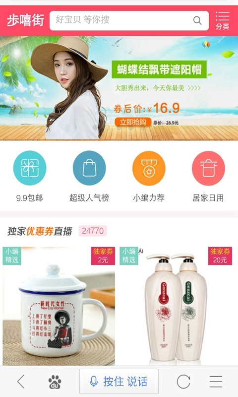 歩嘻街--全场五折包邮!优惠券折扣直播第返利网 限时限量特卖,人工选货每天更新千款商品,每天都有商品优惠券送出哦!