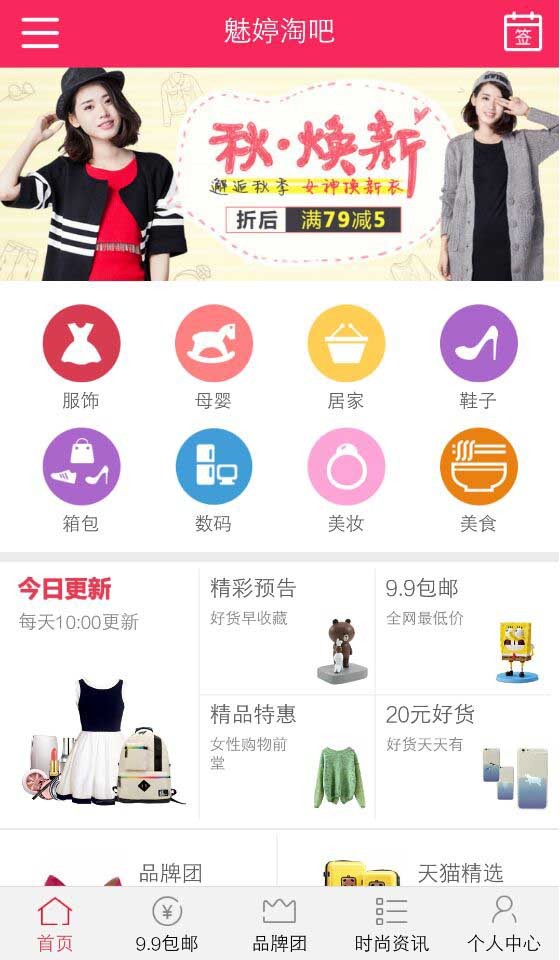 魅婷淘吧app是一款生活服务的应用软件,优惠券折扣,九块九包邮,十九块九包邮,0.1折起限时抢购,积分兑换等福利活动,不容错过!是千万购物达人、辣妈、学生族、剁手党们手机购物的省钱神器!