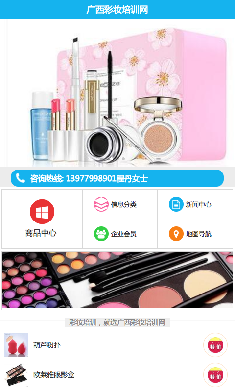 广西彩妆培训网APP一站式服务平台,本着合作互利,便商便民,促进彩妆培训行业发展的目的,为彩妆培训企业商家搭建一个相互沟通和交流以及产品展示的平台,为用户提供更便捷的购物通道。真正起到利国利民,促进彩妆培训行业发展的作用。