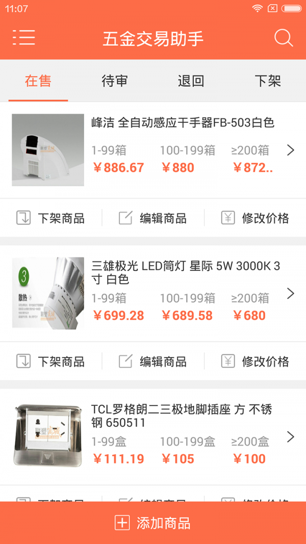2.便捷的商品管理:使用五金交易助手,可以对库存进行简单便捷的管理,告别自己都不知道自己有多少货的情况!
