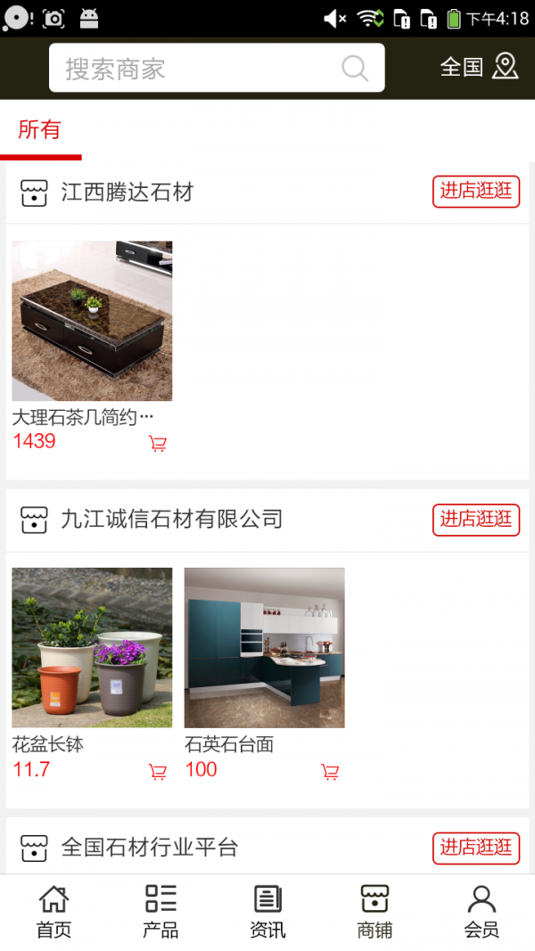 全国石材行业平台App是一款网络购物类应用,用户通过全国石材行业平台app可以随时随地在线选购自己需要的商品,轻松购物。