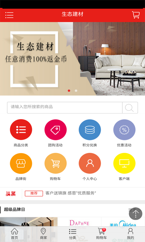 生态建材是基于移动互联网平台而研发的手机客户端,在此平台上,用户可以了解到最新的资讯、互动服务信息,并可以提供商户、行业渠道商、行业客户、终端用户等互动交流信息。
