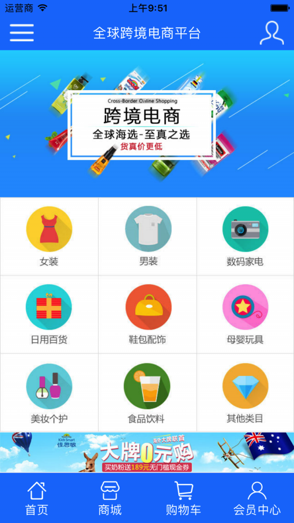 全球跨境电商平台为用户精心打造的一站式网购软件,囊括家居用品、美妆个护、家用电器、母婴用品、服饰箱包、食品饮料等商品频道。