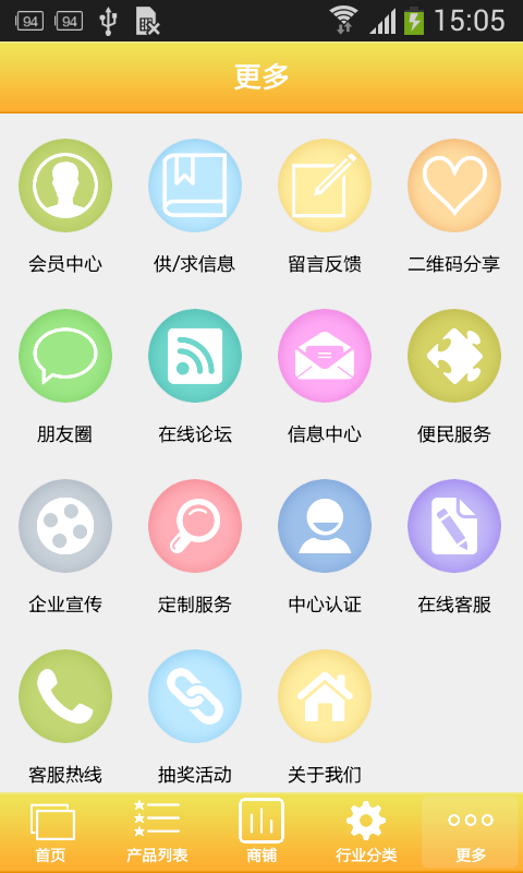 【产品列表】:本应用提供相关各种产品分类,方便客户查询购买。