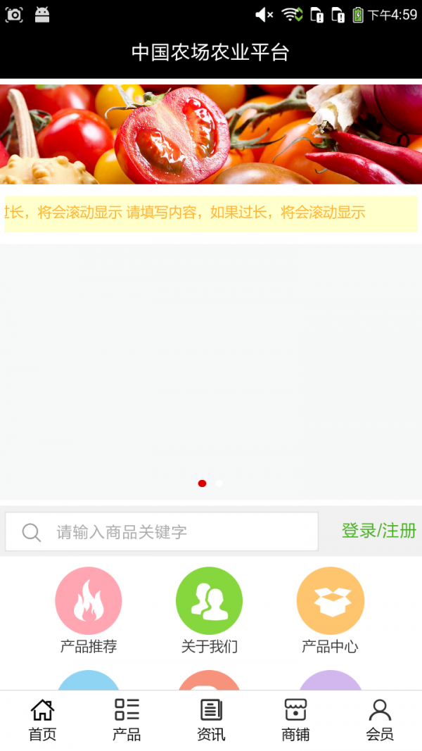 农场农业平台app不仅具备购物、查询订单、搜索商品、行业资讯和产品评价等常用功能,而且还实现了手机版特有的会员注册登录、广告位、招商开店等功能。目标是整合当地品牌商、生产商、经销商,为商家和消费者之间提供一站式解决案。欢迎下载使用!