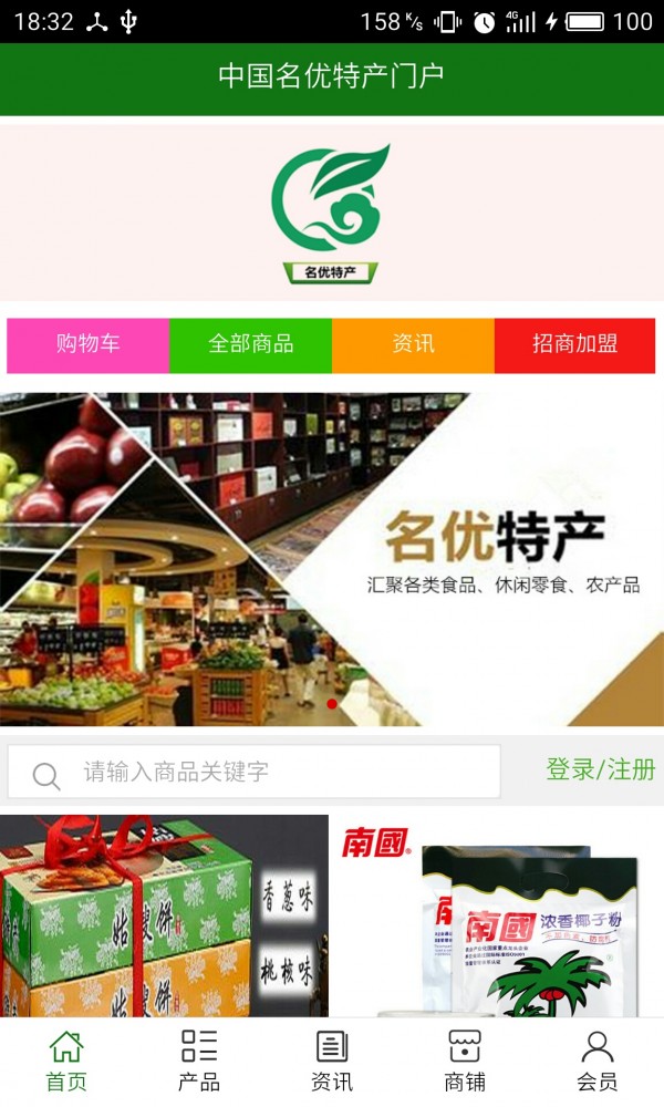 中国名优特产门户App不仅具备购物、查询订单、搜索商品、行业资讯和产品评价等常用功能,而且还实现了手机版特有的会员注册陆、广告位、招商开店等功能。目标是整合当地品牌商、生产商、经销商,为商家和消费者之间提供一站式解决方案。