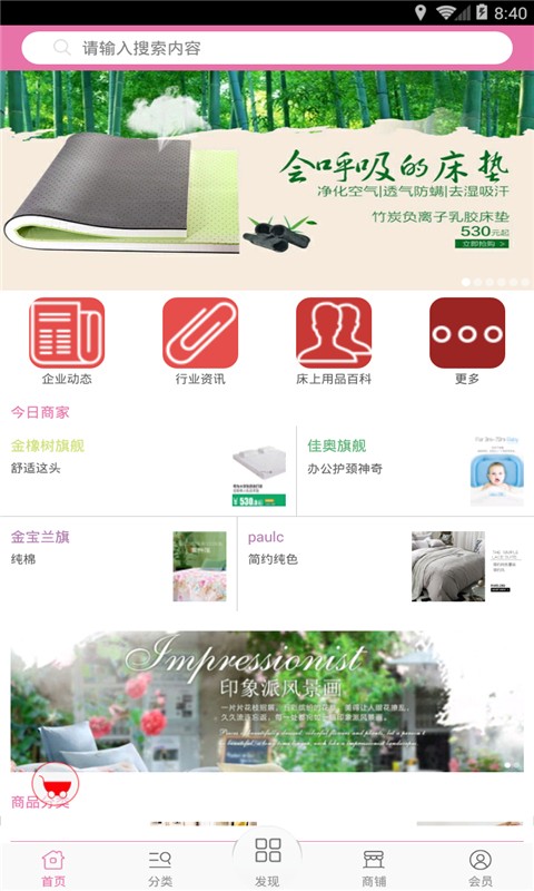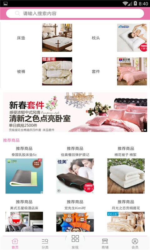 床上用品网app是一款在线购物商城,专注销售床上用品,品类齐全,物美价廉,让你花很少的钱就可以购买到优质的床上用品。