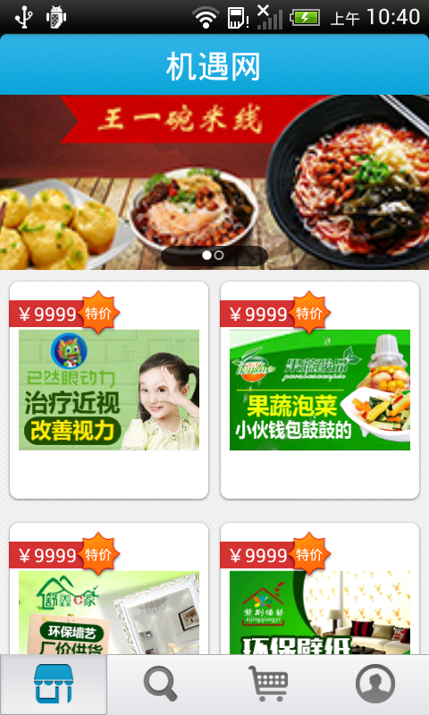 中国机遇网商城主要介绍了餐饮小吃、家居装饰、酒水饮品、美容保健和环保建材等机遇发展信息,为相关行业实现移动信息化交易,在企业与客户之间架起信息沟通的桥梁和交易的平台,为企业提供经济快速、准确、丰富的专业信息服务和电子商务服务。