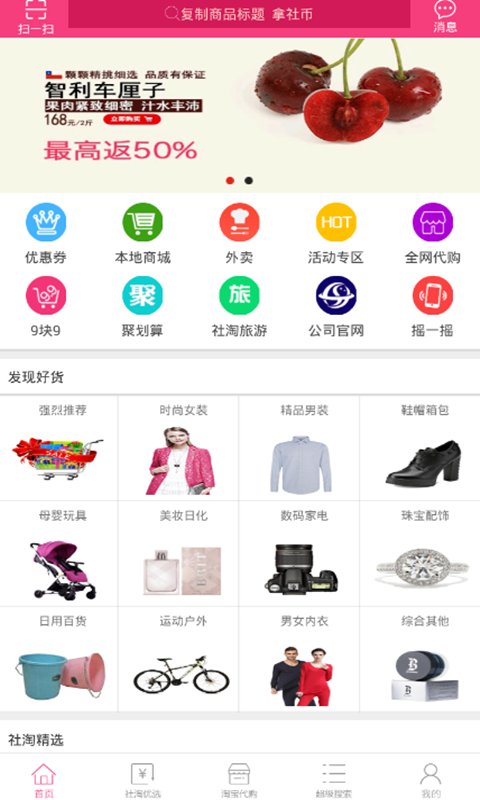 百米社淘app是一款网络购物应用,百米社淘app为用户提供便捷的购物服务,低价优质的商品,让用户购物更省钱。