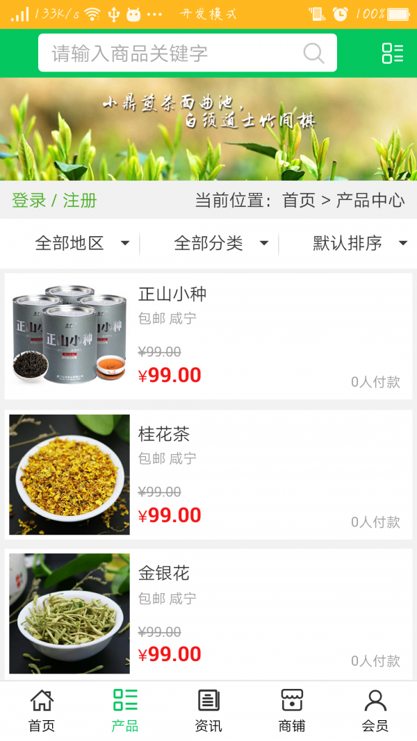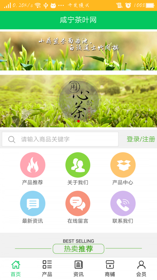 咸宁茶叶网APP不仅具备购物、查询订单、搜索商品、行业资讯和产品评价等常用功能,而且还实现了手机版特有的会员注册登录、广告位、招商开店等功能。目标是整合当地品牌商、生产商、经销商,为商家和消费者之间提供一站式解决案。