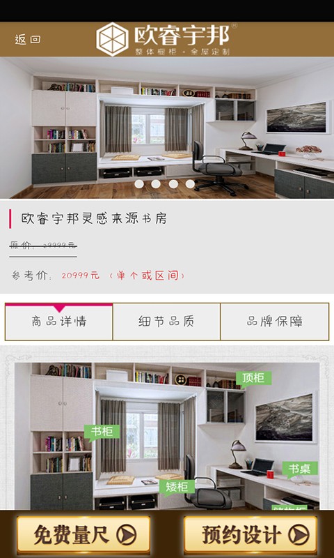 定制书房app是一款网络购物应用,定制书房app为用户提供一个便捷的家居购物商城,方便用户在这里定制各类家具商品,方便实惠。
