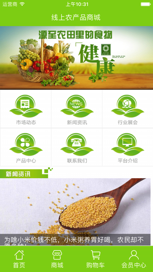 线上农产品商城app是一款农产品在线购物商城,线上农产品商城app为用户提供类目齐全的农产品,足不出户就额可以下单购买,享受绿色健康生活。