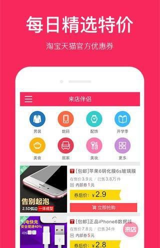 来店伴侣app是一款网络购物应用,来店伴侣app精选淘宝天猫特价商品,旨在让你可尽享实惠购物服务。