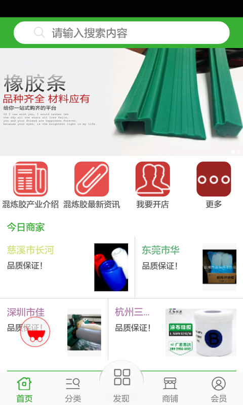 混炼胶网app是一款以购物为核心功能的软件,通过混炼胶网app你可以方便的购买到自己需要的产品,同时了解更多产品信息。