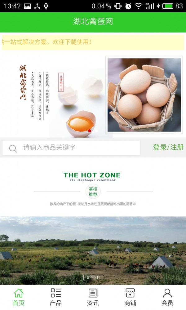 湖北禽蛋网APP客户端不仅具备购物、查询订单、搜索商品、行业资讯和产品评价等常用功能,而且还实现了手机版特有的会员注册登录、广告位、招商开店等功能。目标是整合当地品牌商、生产商、经销商,为商家和消费者之间提供一站式解决案。