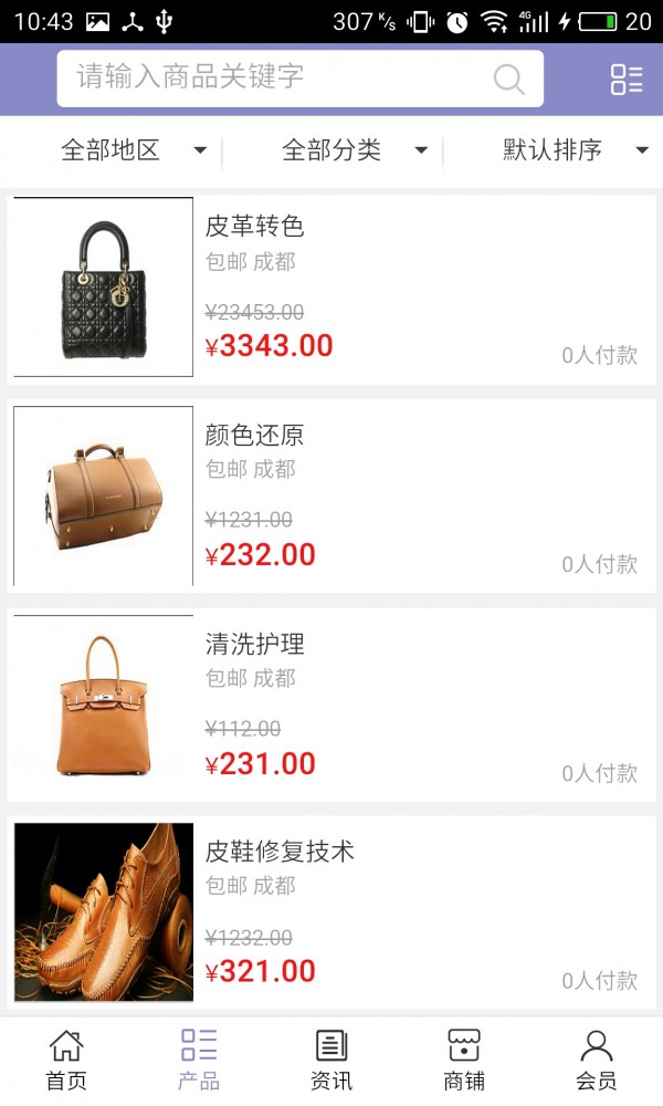 成都皮具护理app不仅具备购物、查询订单、搜索商品、行业资讯和产品评价等常用功能,而且还实现了手机版特有的会员注册陆、广告位、招商开店等功能。目标是整合当地品牌商、生产商、经销商,为商家和消费者之间提供一站式解决方案。欢迎下载使用!