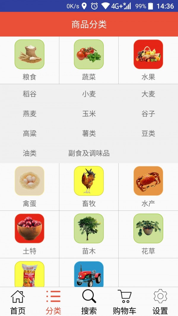 上农公社app主要销售粮食、蔬菜、水果、禽蛋、畜牧、水产、苗木、花草、农农机、土特产等农业类相关商品。