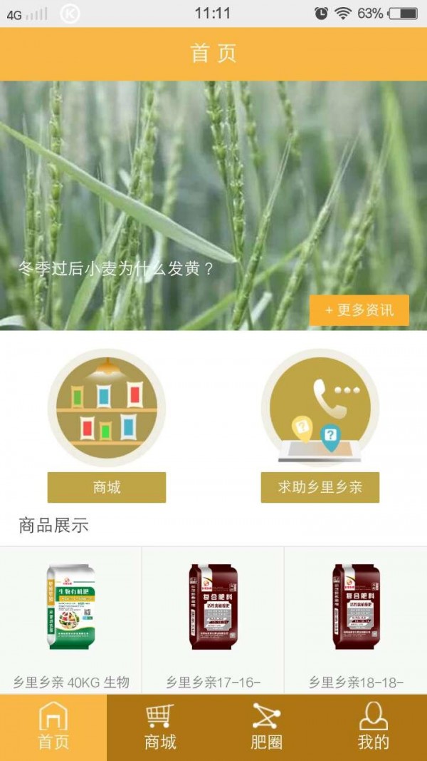 肥圈是一款服务于农资人APP,通过肥圈可以查看最新的农业资讯,在商城里可以购买农资,有问题可以向乡里乡亲发起求助,并且可以在肥圈里交流农业相关信息,农资人的好助手!