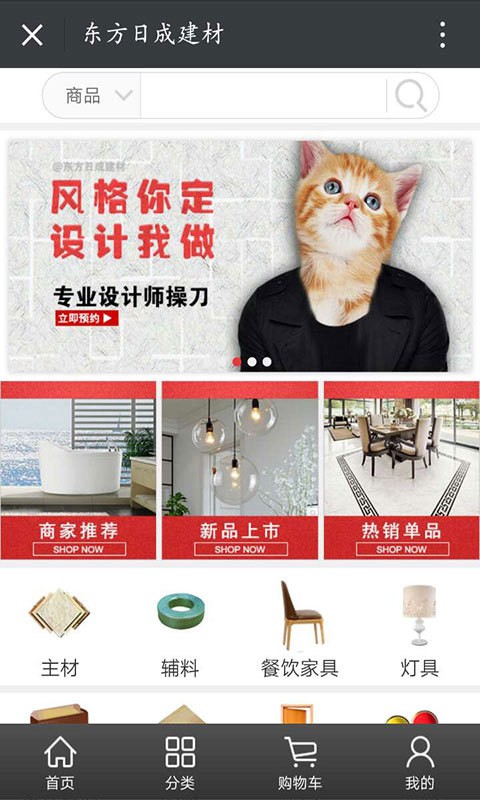 东方日成app是一款网络购物应用,东方日成app为用户提供一个便捷的家具建材购物平台,用户可以通过软件轻松采购各类建材产品,购物更实惠。