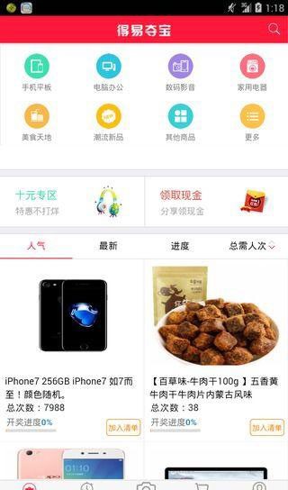 得易夺宝app是一款网络购物应用,是个1元众筹购物平台。得易夺宝app秉承公平公正的原则,旨在让大家可放心夺宝。