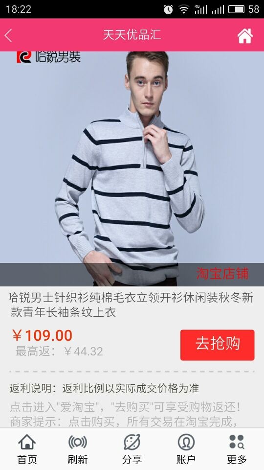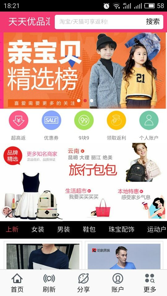 时尚潮流的购物平台APP, 优惠、导购、购物时尚;网购各行各业,各种生活用品,样样齐全;轻轻松松购物,稳稳当当返利。