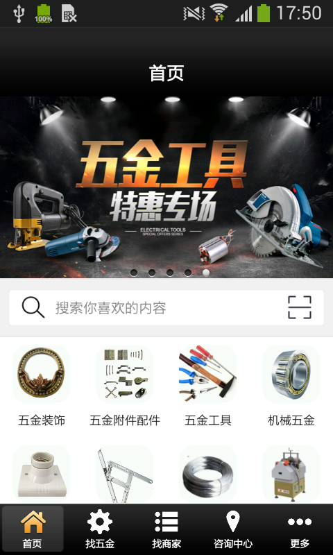 还是一个专门销售五金产品的商城平台,这里有齐全、优质、实惠的产品,五金装饰、五金工具、机械五金、电气五金、建筑五金等产品,在手机上点击几下,即可收入囊中,方便快捷。