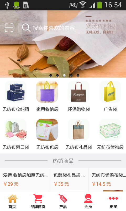 无纺布包装制品app致力于打造成为国内外大型的包装制品销售平台,这里有多种包装制品可以采购,例如家用收纳袋、环保购物袋、广告袋、无纺布包装、无纺布礼品袋、无纺布储物袋等品种,眼花缭乱的选择,但价格却不贵,绝对是物美价廉的体验,现在只需拿起手机,点击几下,足不出户就能得到品质保证的优质包装制品,还等什么,赶紧下单购买吧。