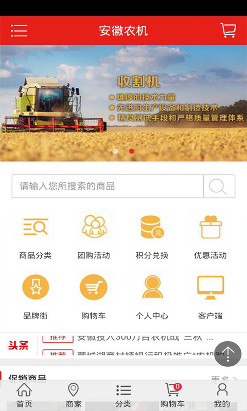 安徽农机是一款实用信息平台,集商城、品牌街、积分兑换、优惠活动团购活动和热卖等功能于一体,真实、高效地让您生活更简单!安徽农机是以企业和个人带来商机为出发点,合作会员还可以通过供求商机来展示自己的特色产品,拓展移动营销渠道,随时随地把握移动互联网商机。