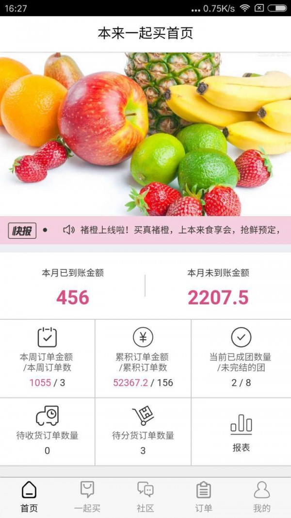 本来一起买是本来食享会首先发起的社区购物方式。由全国社区合伙人发起亲友邻里间一起购买,凝聚社区消费者的力量,拉近产销,让用户以更低的价格、更快的速度、更好的体验购买到优质的商品。