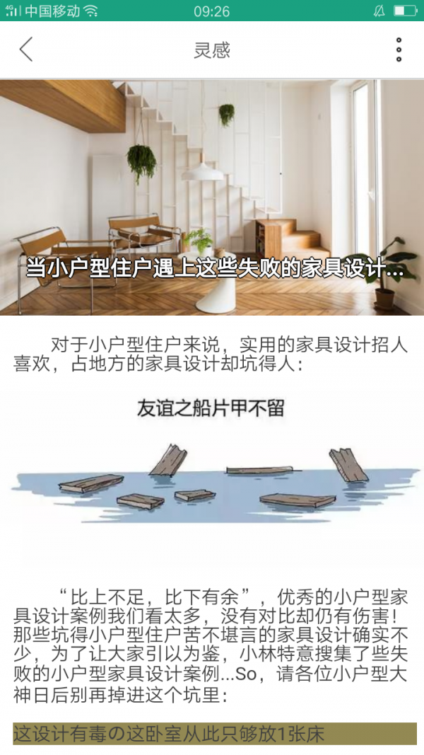 通过VR全景向用户展示家具,全方位立体展示,让用户能够有更好的体验。用户可以给朋友分享相关的漫游。用户可以通过阅读相关家装的文章学习家装知识,获取灵感。