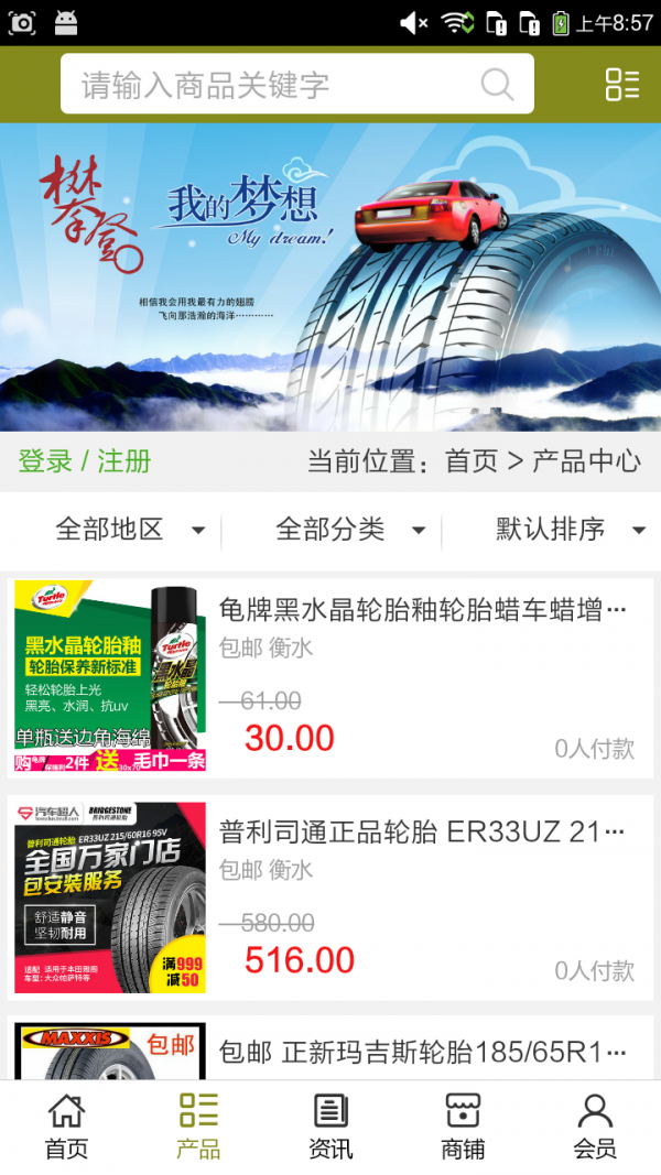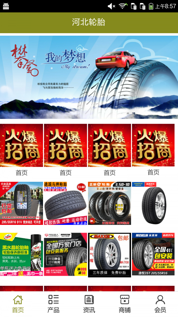 河北轮胎APP不仅具备购物、查询订单、搜索商品、行业资讯和产品评价等常用功能,而且还实现了手机版特有的会员注册登录、广告位、招商开店等功能。目标是整合当地品牌商、生产商、经销商,为商家和消费者之间提供一站式解决案。