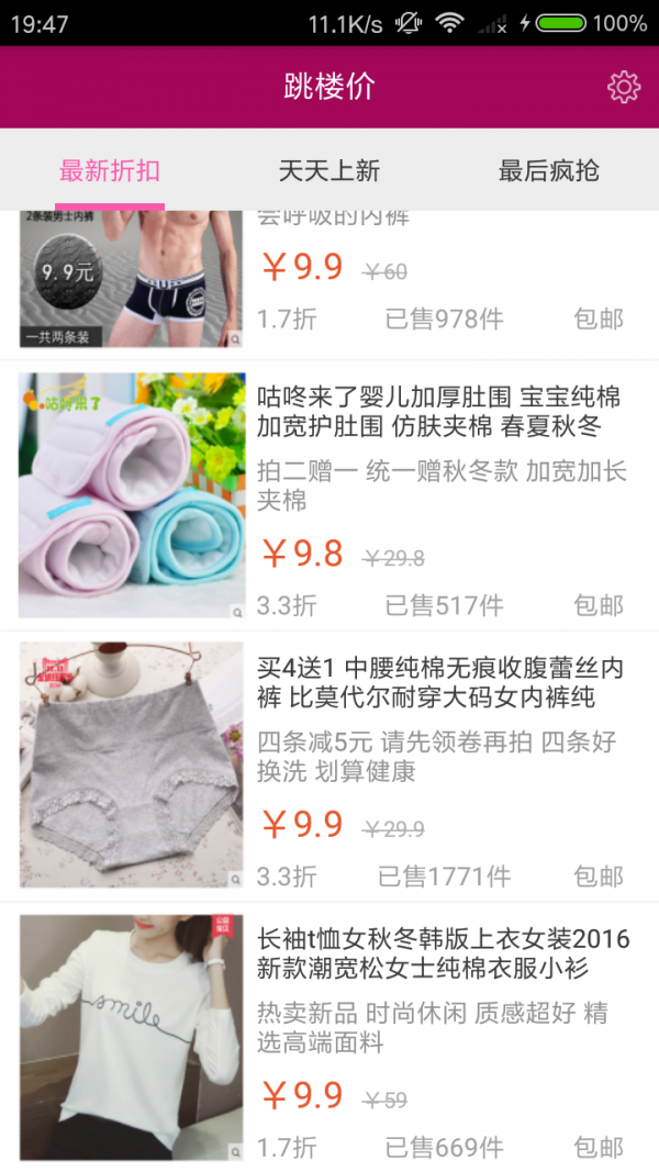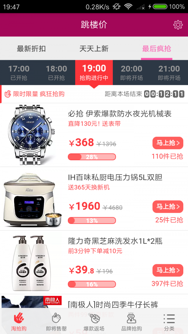 跳楼价app是一款网络购物应用,精选海量特卖商品,涵盖多个商品类目,您想要的这里都有,随时随地尽享低价购物体验。