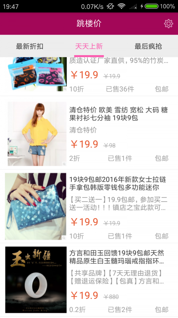 任性包邮:全场商品低至1折包邮,一块也包邮。