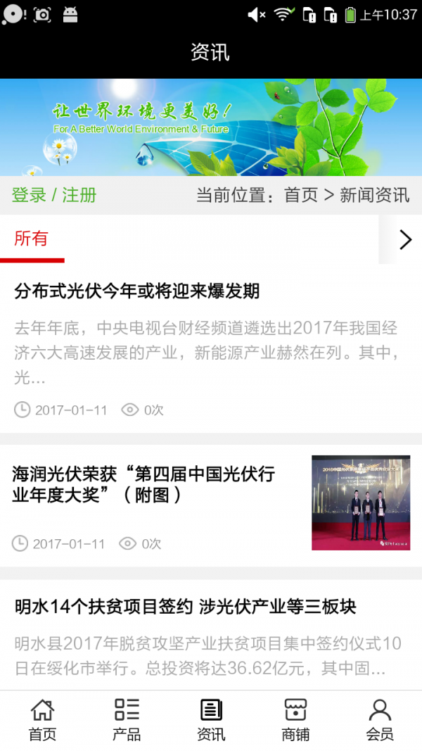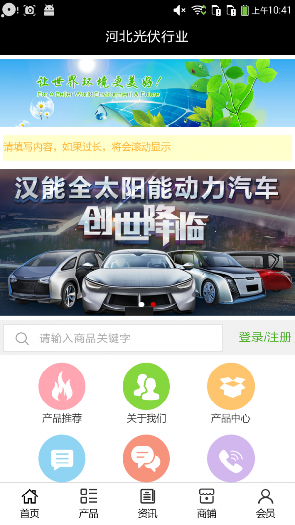 河北光伏行业app仅具备购物、查询订单、搜索商品、行业资讯和产品评价等常用功能,而且还实现了手机版特有的会员注册登录、广告位、招商开店等功能。