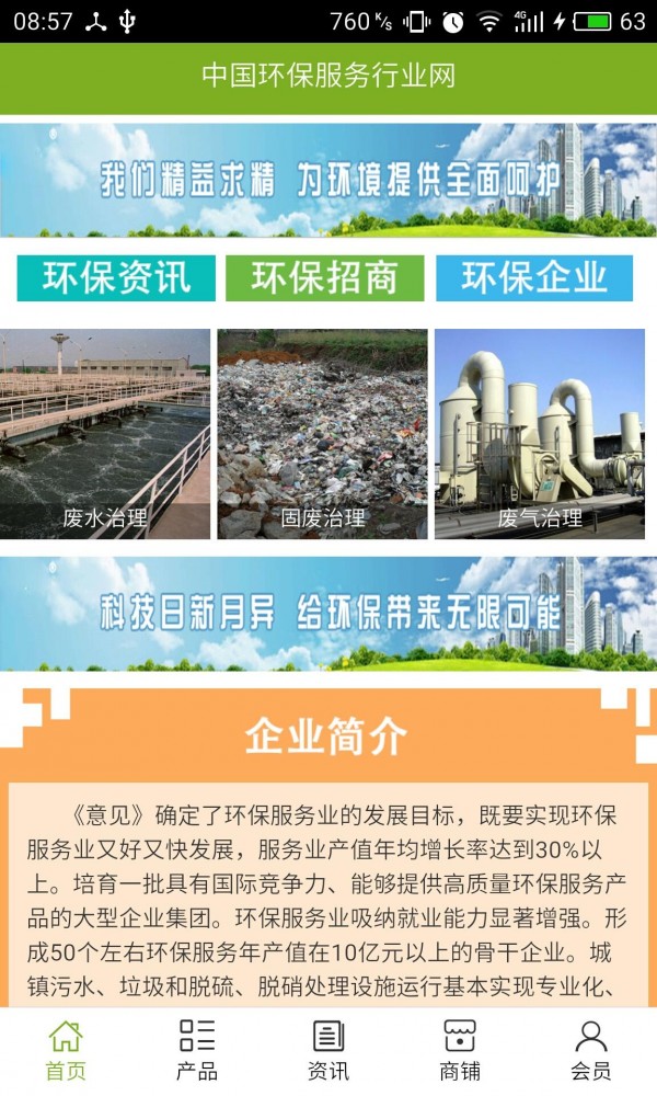 环保服务行业网app是一款网络购物应用,通过环保服务行业网app你可查阅环保资讯,了解项目招标信息,以及在线选购环保产品等。