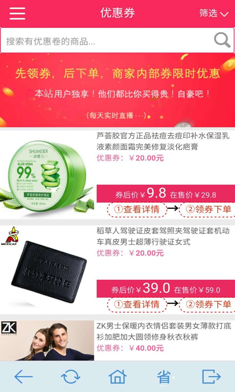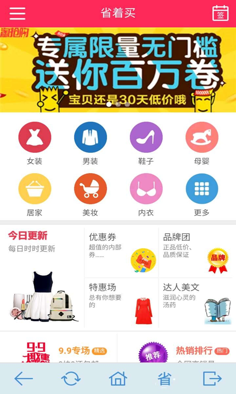 省着买app,体积小,功能强大,为网购者省钱。省着买——是网购的导航站,本应用为所有的网购朋友提供各商家优质商品信息。