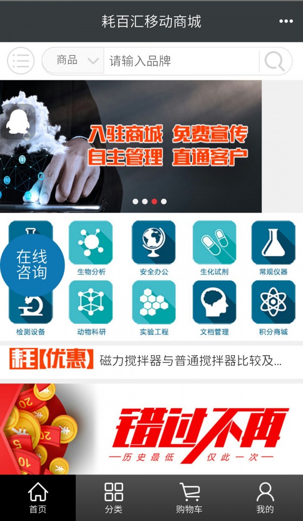 耗百汇app是一款手机购物商城软件,耗百汇专注销售各类科研实验器材,用户可以随时随地在线下单购买,器材种类齐全,一应俱全,让购物更简单。