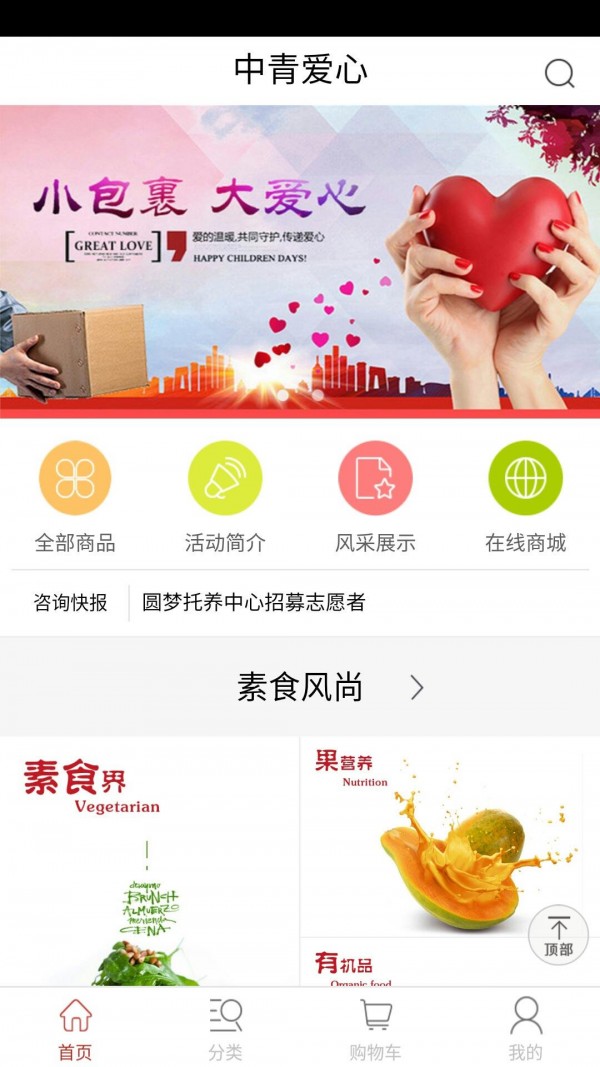 中青爱心网app是一款网络购物应用,是个集传统文化展示,艺术、百货、素食类商品售卖的移动平台。中青爱心网app旨在让用户们足不出户就能买到需要的产品。