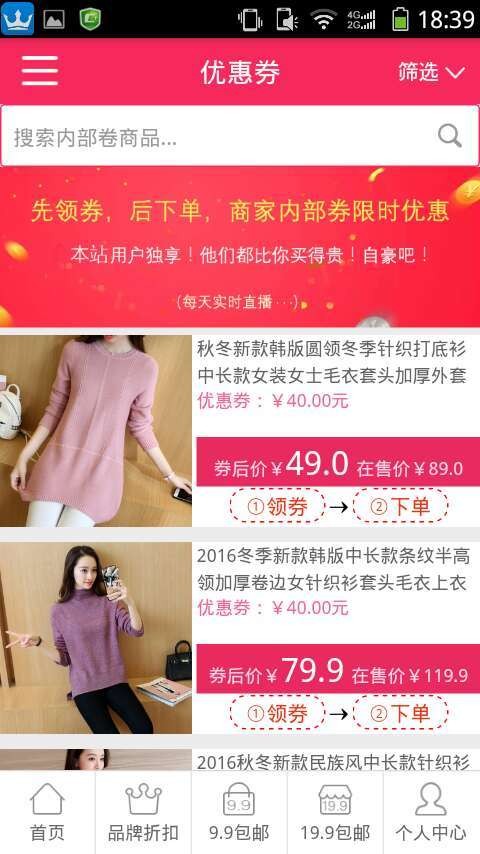 实惠100先领券后购物是一款实用的app导购应用。免费领取优惠券,内部券专享。9大分类知名品牌。一折特价划算到家。九块九包邮-便宜超值。每日更新商品达千件。实为剁手女生,购物达人,败家姐姐们最喜爱的购物应用!
