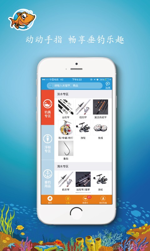 我的钓鱼app是一款电商购物应用,我的钓鱼app为用户打造一个钓鱼器材购物平台,用户可以通过软件轻松选购合适的钓具,为喜欢钓鱼的用户带来方便。