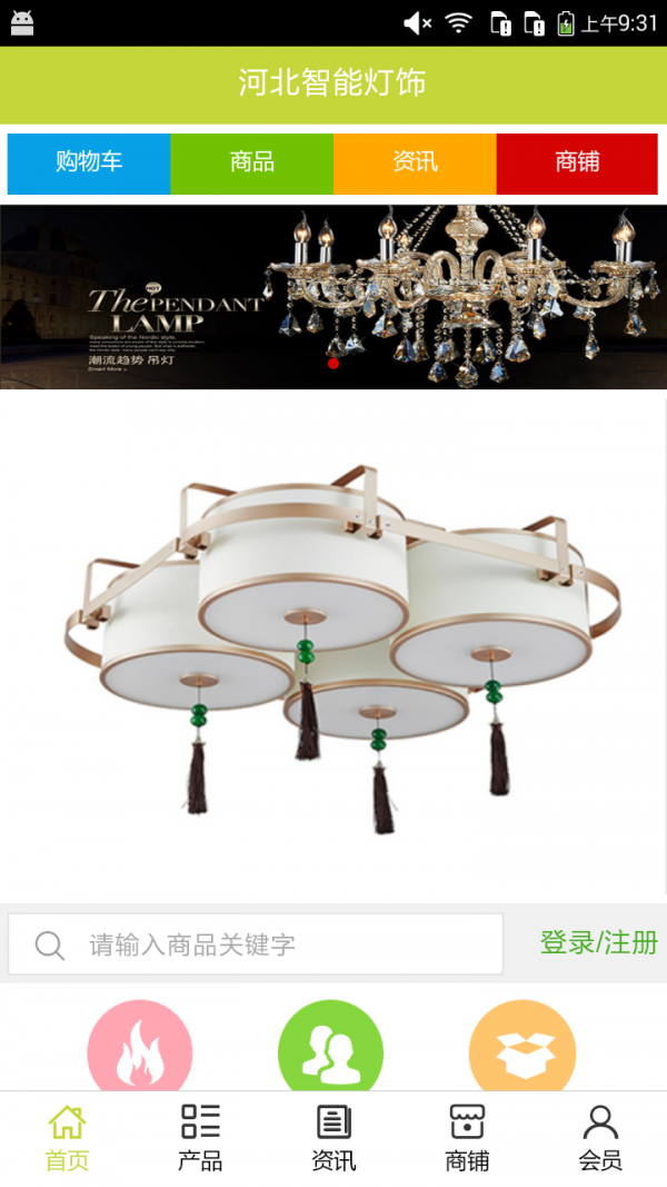 河北智能灯饰app不仅具备购物、查询订单、搜索商品、行业资讯和产品评价等常用功能,而且还实现了手机版特有的会员注册登录、广告位、招商开店等功能。