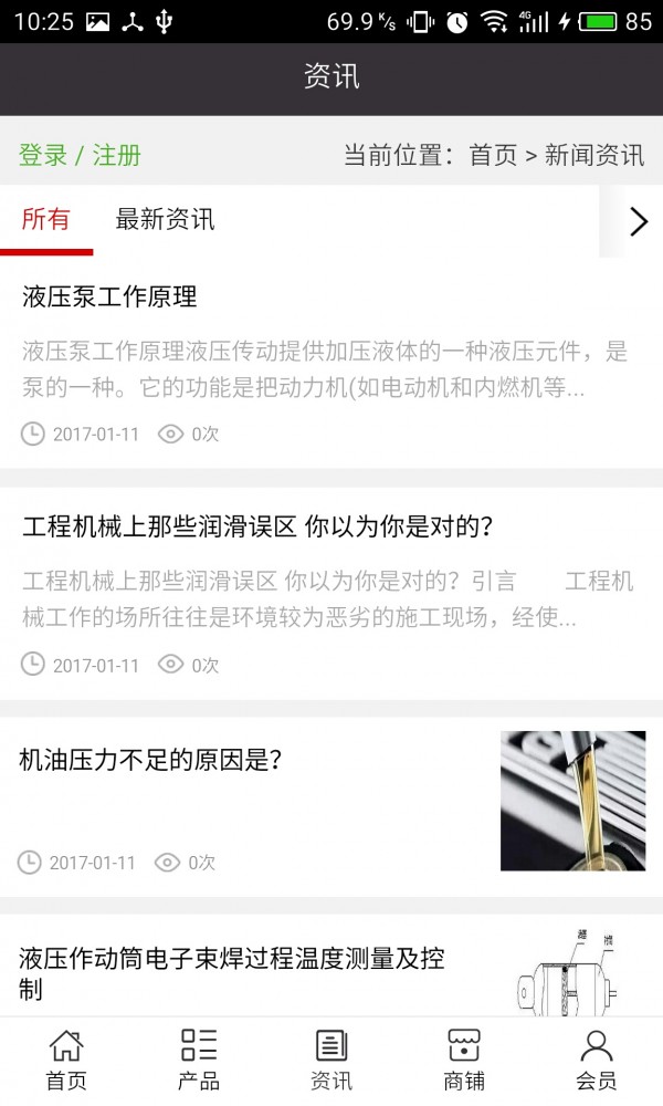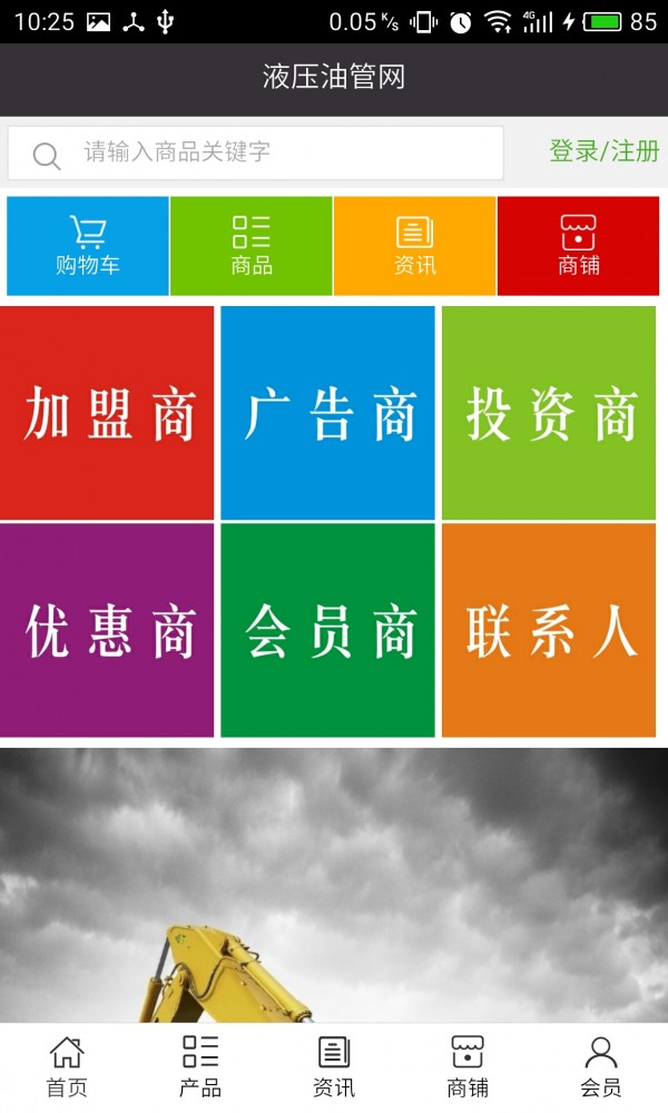 液压油管网APP不仅具备购物、查询订单、搜索商品、行业资讯和产品评价等常用功能,而且还实现了手机版特有的会员注册陆、广告位、招商开店等功能。目标是整合当地品牌商、生产商、经销商,为商家和消费者之间提供一站式解决方案。