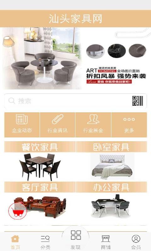 汕头家具网app是一款网络购物应用,是个专门销售家具的移动平台。通过汕头家具网app你可便捷的查阅产品信息,了解行业和展会资讯,以及在线选购商品等。
